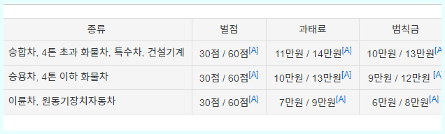 속도에 따른 벌점을 알아보도록 하겠습니다