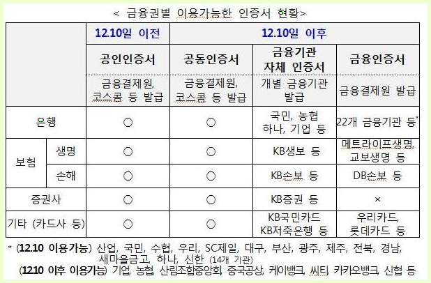 기존의 공인인증서를 쓰시던 분들이라면 만료기간까지 그대로 사용할수 있으며 만료시 공동인증서로 재발급변경하시면 됩니다 그리고 민간인증서 서비스를 이용하실려는 분들도 서비스 사업자가 정해지는 1월 1일부터는 위에 있는 후보군들중 서비스업체를 선정하셔서 간단하게 발급하시면 금융거래를 쉽게 이용하실수 있습니다
