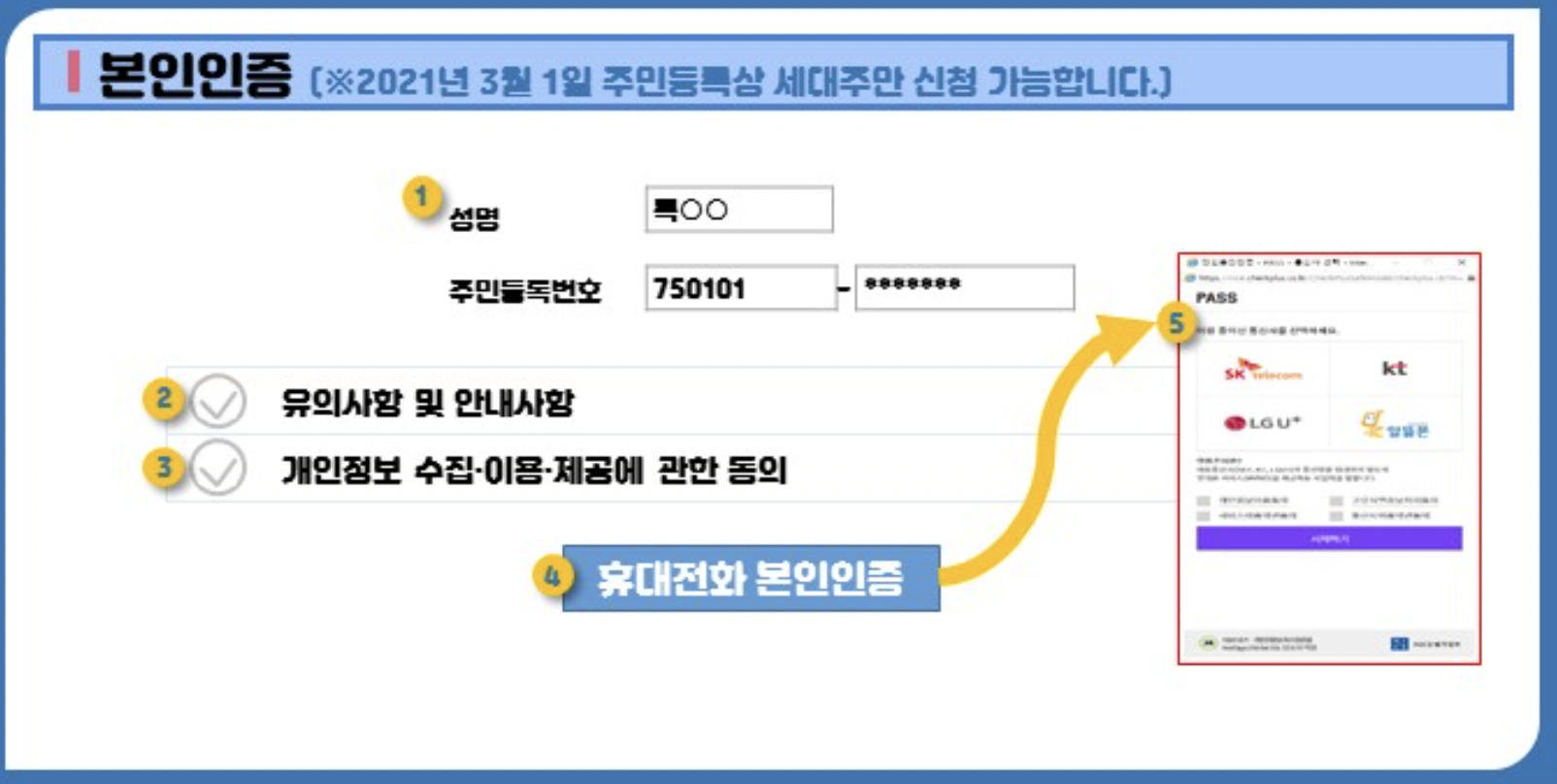 세대주 본인의 성명 그리고 주민등록번호를 입력합니다 출생년도 끝자리에 맞춰서 홀짝제 운영