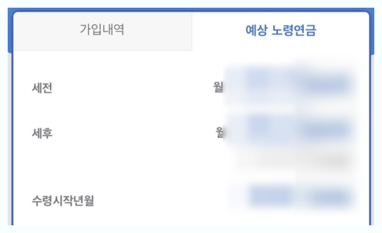 조회시 위에는 이러한 화면이 나오며 아래에는 세전 금액과 세후 금액이 나옵니다 또한 수령시작년월일도 나오니 확실하게 얼마가나오는지 언제부터 지급받을수 있는지 확인이 가능합니다