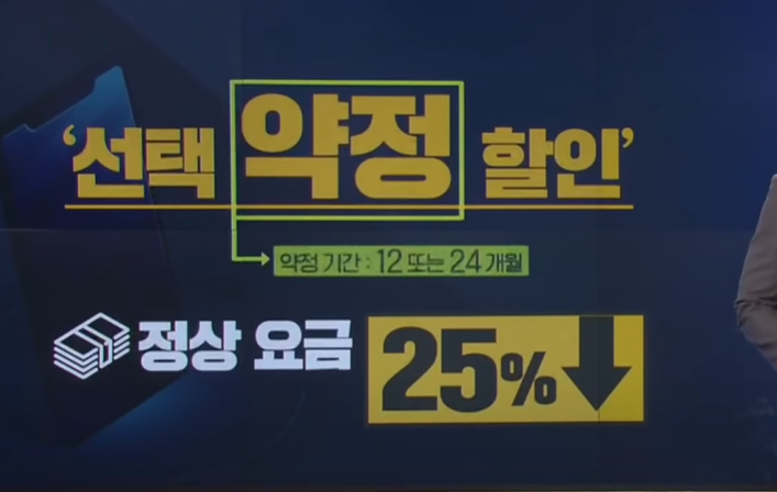 선택약정도 설명드릴게요 통신비 절감을 목적으로 사용하는 기본료 25%를 할인받을수 있는 제도이며 약정기간은 12개월 24개월 설정할수 있으며 하지만 단말기 할인은 추가되지 않습니다 약정기간을 채우지 못하면 할인금을 위약금으로 내야합니다 선택약정을 주로 사용하는 기종은 공시지원금이 낮아서 단말기 혜택이 적은 모델을 구매할때 사용합니다
