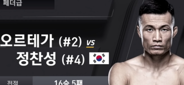 정찬성은 한국인 최초로 UFC 타이틀 매치를 치르면서 우리나라 역사상 최고의 MMA선수로 평가받고 있으며 WEC 시절부터 명경기를 만들어내서 팬들에게 인기가 많습니다 UFC 초반부터 임팩트있는 멋진 승리를 만들어서 연달아 타이틀전까지 확보 했지만 군복무 그리고 부상등의 공백을 겪고도 성공적으로 복귀해서 다이틀을 노리는 탑 컨텐더로 불리고 있습니다