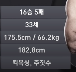 정찬성에 대해서 먼저 간단한 프로필을 살펴보도록 하겠습니다 정찬성은 올해 33세 1987년 3월 17일 생입니다 출생지는 경북 포항시에서 태어났으며 신체조건으로 173cm 65kg 리치187cm 입니다 리치는 어깨 수술전에는 189cm였지만 수술후에는 줄었습니다 그의 전적으로는 최근 경기를 통해서