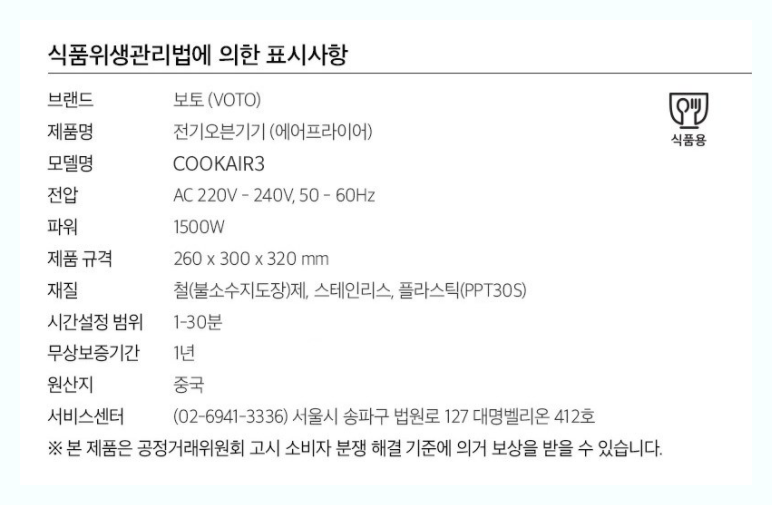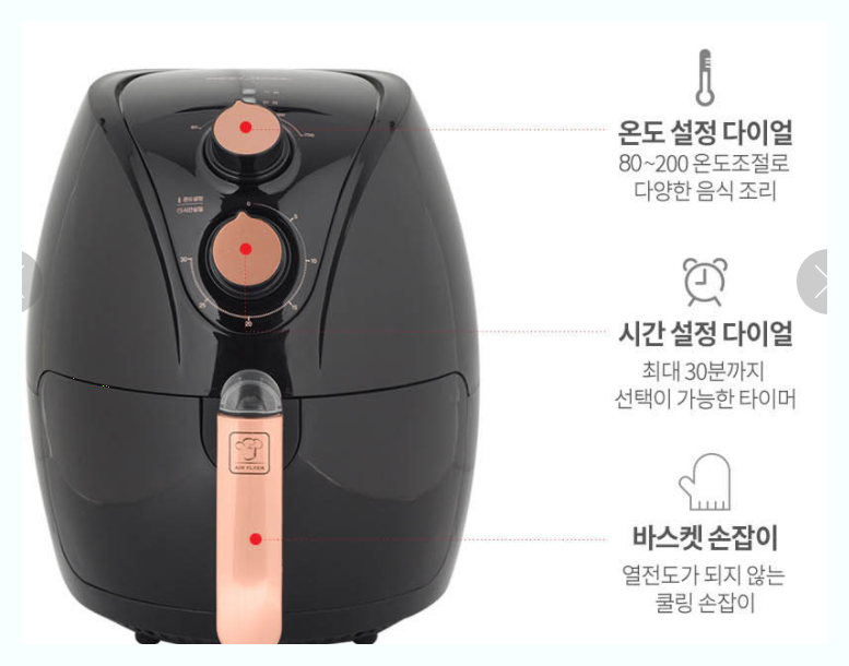 저렴한가격으로 쿠o에서 많이 팔린제품입니다 시간조절기능30분 온도는 80~200도 공기순환방식이며 대신 용량은 좀더작은 2.0리터입니다 기존에 많이 쓰는 2.6L보다는 작은 모델이라는걸 생각하셔야합니다 그만큼 저렴하구요