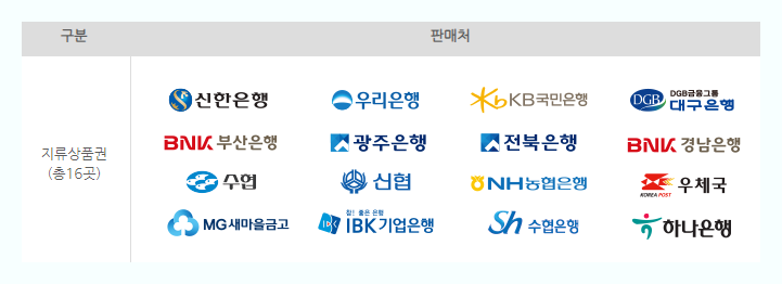 구매지점을 찾으셔서 구매하시면됩니다 또한 구매지점들은 종이상품권은 대부분 은행이나 우체국이니 다른곳에서 판매한다고 하면 주의하시기 바랍니다 전자상품권 또한 은행 예외로 비씨카드사 같은곳 한군데이며 모바일 상품권은 사진을 첨부하도록 하겠습니다