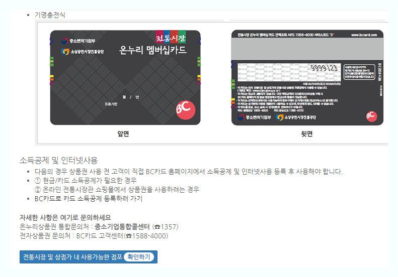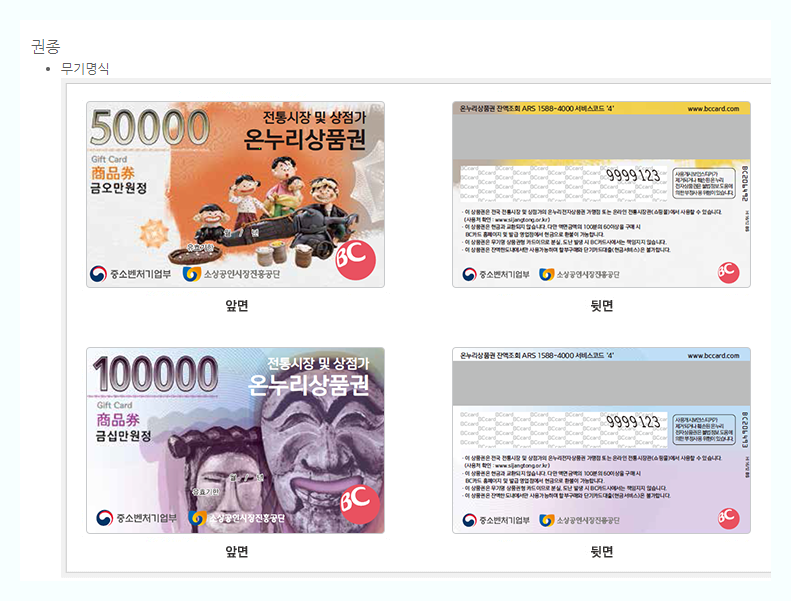 전자상품권은 카드형식이며 무기명식 기명충전식 두가지가 있습니다 이카드를 보시면 아시겠지만 BC카드 홈페이지에서 등록을 해야 사용할수 있습니다