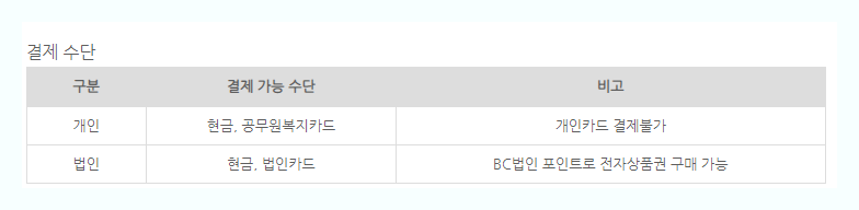 특수한 할인 상품권이다보니 개인카드로는 결제가 불가능합니다 현금 또는 공무원 복지카드로만 구매가능하다는점 알아두세요