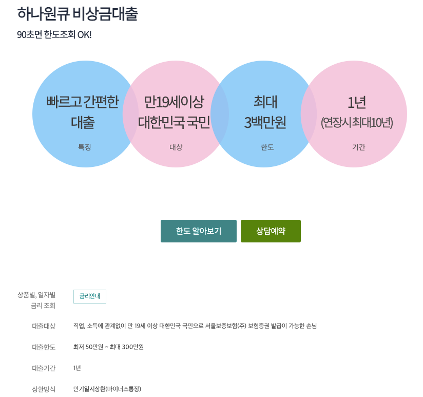 하나은행 원큐 비상금 대출금리