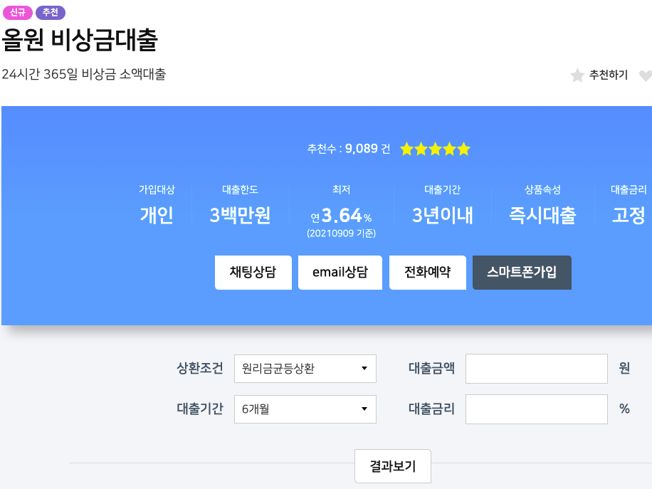 오늘은 많은 분들이 쉽게 볼수 있도록 모바일 간편대출 상품들을 알아보았습니다 저축은행쪽의 비상금대출은 자격은 넓지만 다소 금리가 높다는 단점이 있으니 아래쪽에 제가 준비한 정부지원 대출들을 보셔서 비교해보시고 좀더 용이한 쪽으로 생각해 보시기 바랍니다 대출은 많은 정보를 비교해보는게 제일 좋습니다