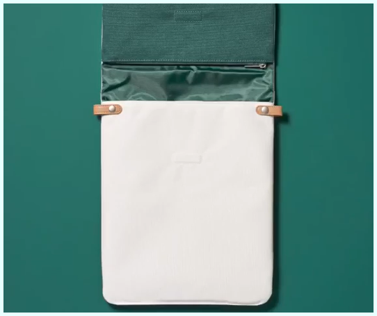 이 크로스백은 로우로우와 협업한 제품입니다 탈부착이 가능한 가방끈이 포함되어 있습니다 가방을 접어서 사용할수도 있습니다 참고사진을 남기도록 할게요 태블릿으로는 11인치 정도 들어갈 사이즈로 보입니다 이제품의 다른 특징으로는
