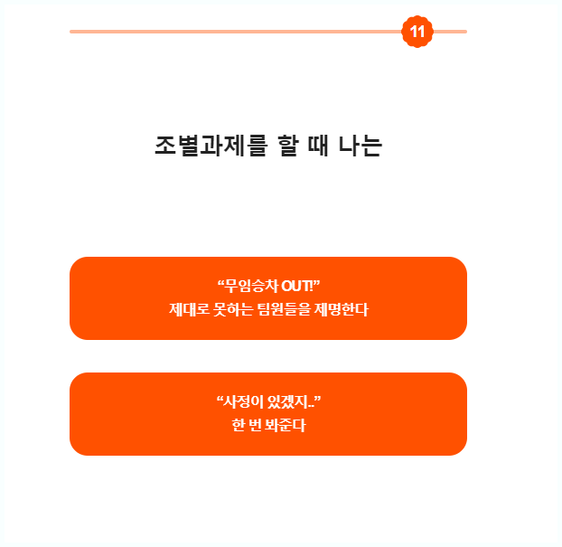 조별과제를 할때 무임승차인원을 어떻게 할지를 고르는건데요 아부분은 좀 고르기 힘들었습니다 어떠한 사정이 있다면 봐줘야 하겠지만 정확한이유를 모른다면 재명해야 한다고 생각하니까요