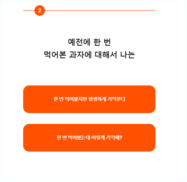 전 한번만 먹어보면 기억이 잘안나더군요 한번 먹어봤는데 어떻게 기억해를 선택했습니다 그리곤 다음질문이 내 최애 과자가 맛없다고 소문이 났을때 나는 에서 전 아랑곳하지 않고 먹는성격 같습니다 선택! 다음 질문은 시험기간에 관한 테스트 질문입니다