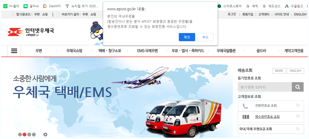 우체국 등기 우편 조회 - 국제우편 EMS 등기번호 조회 방법