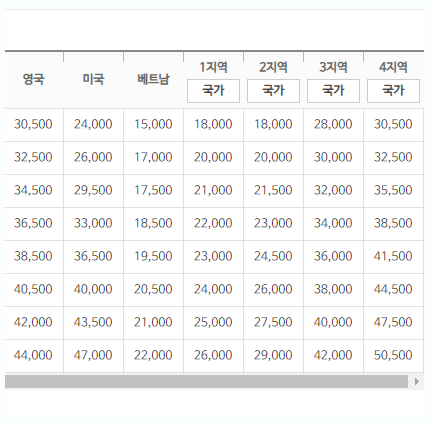 국제우편요금표 가격은 양이 많아서 아래를 확인하시면 됩니다