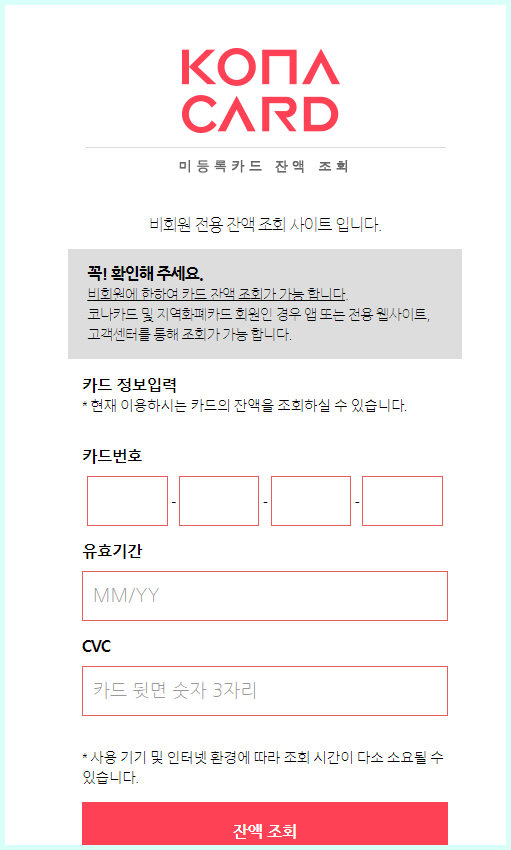 코나카드 비회원 잔액조회 방법 알아봅시다