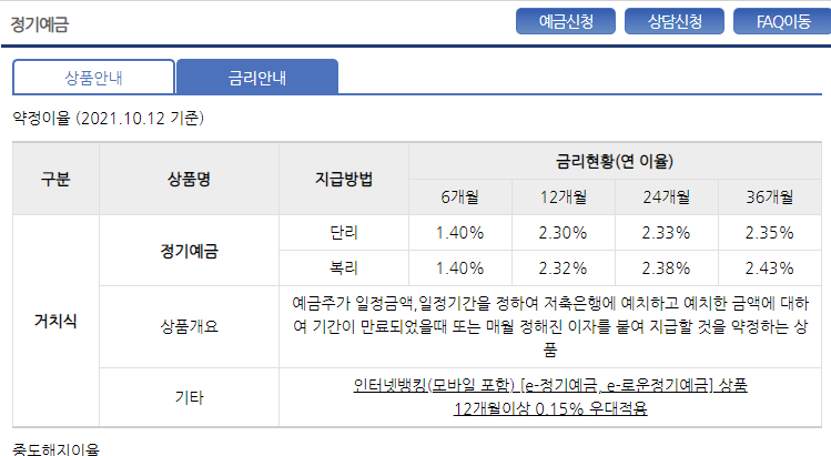 기간2021.10.01 ~ 예금한도 500억 소진 시까지