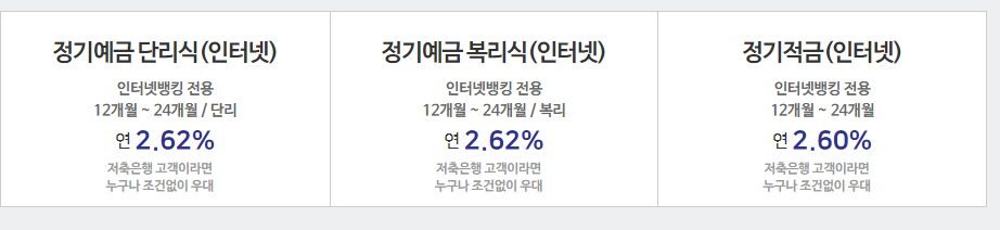 금리2.62% (12개월), 최고 2.62%(12개월)