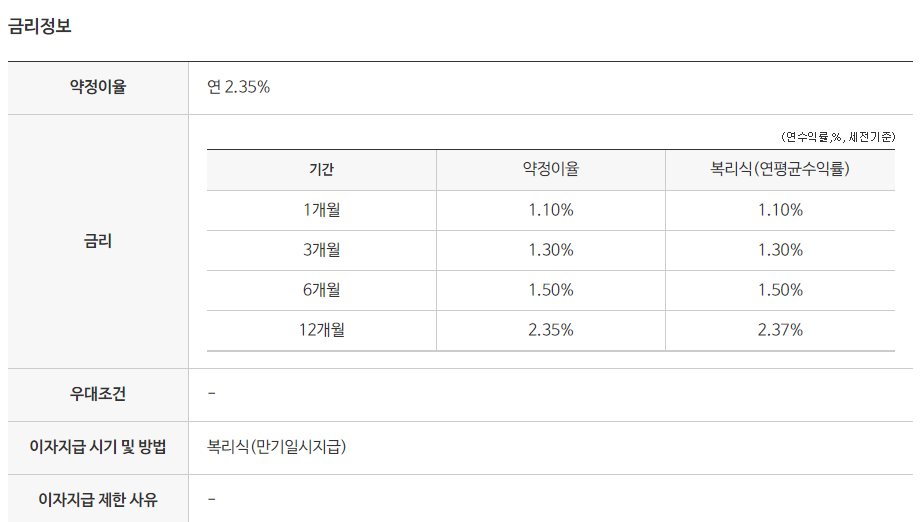 금리2.35% (12개월), 최고 2.35%(12개월)