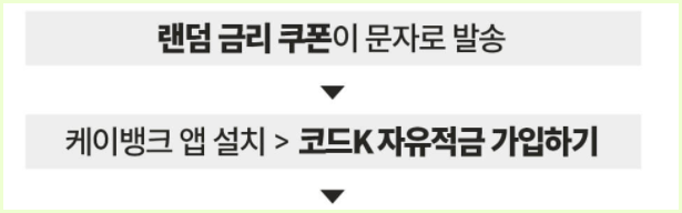 그리고 반드시 제가 위에 남긴 코드K자유적금에서 지금가입하기 버튼을 눌러서 케이뱅크를 가입하시고 가입완료후 금리쿠폰 받기를 화면에서 클릭해야 합니다 그러면 랜덤 금리 쿠폰이 문자로 발송이 됩니다