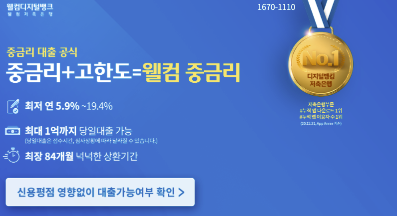 웰컴 저축은행의 웰컴 중금리 대출