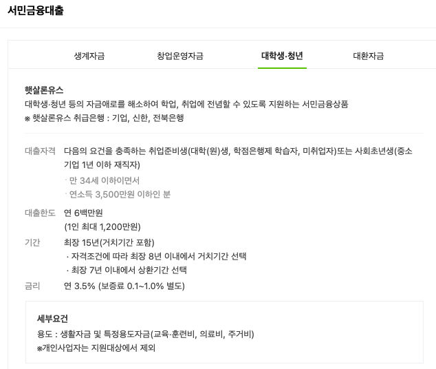 햇살론 유스 모바일 간편대출자격