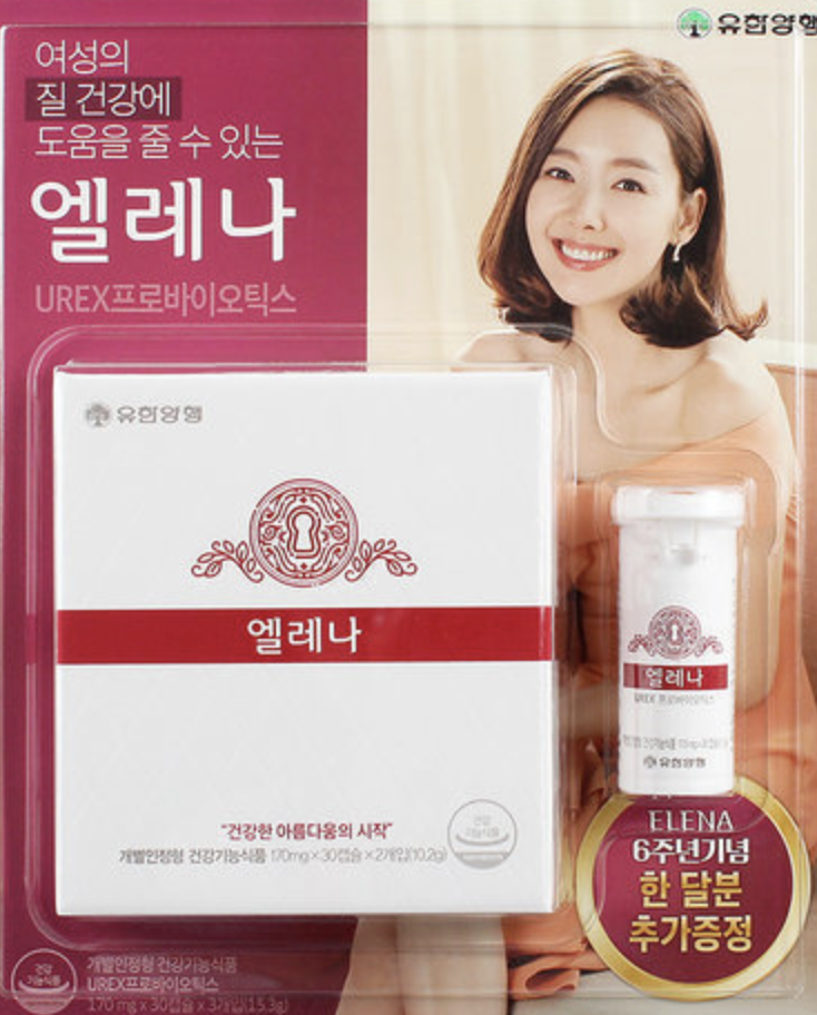 엘레나 유산균은 국내에서 최초로 여성 질건강에 도움을 주는 유산균으로 홍보하고 있습니다 유한양행에서 만든 제품으로 개별 인정형 건강기능식품 UREX 프로바이오틱스를 함유했으며 여성의 질건강과 장건간을 동시에 도움을 주는 유산균 입니다