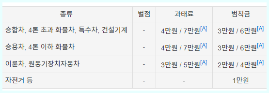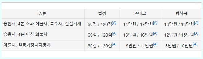 60km/h 초과시는 13~16만원 사이로 벌금이 나오며
