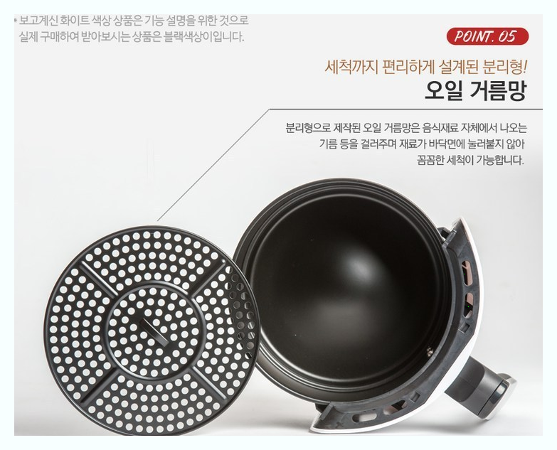 주요제품 성능으로는 온도조절은 80~200도 조절이 가능하며 타이머는 최장 30분 설정이 가능합니다 타이머가 0으로 돌아오면 자동정지되는 모드 입니다 거름망 역활을 하는 바스켓 그리고 팬이 분리가 되는 형식이며 테프론 코팅을 하여서 높은온도에도 인체에 무해하며 식기세척기를 사용할수 있는 구조입니다 가격은 55200원정도에 판매를 하고 있네요 제품상세는 아래를 참고하세요