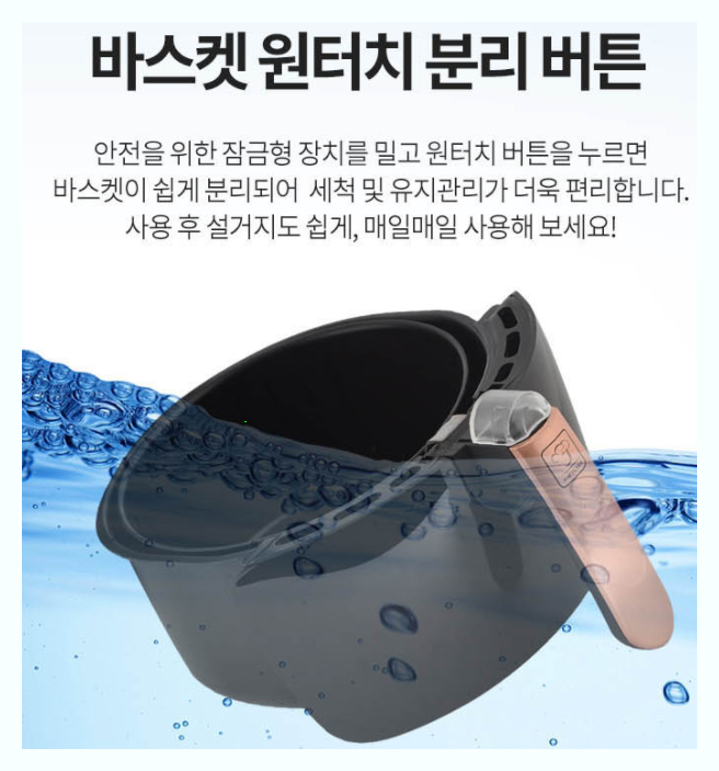 바스켓 원터치 분리버튼으로 쉽게 분리되어 세척과 유지관리가 편하다고 설명되어 있습니다 이모델은 66100원에 판매되고 있습니다 롯데홈쇼핑에서 판매를해서 그런지 홈쇼핑을 방송을 보다가 구매하신 분들이 많은 제품입니다 가성비가 좋다는 리뷰가 보이는 제품입니다